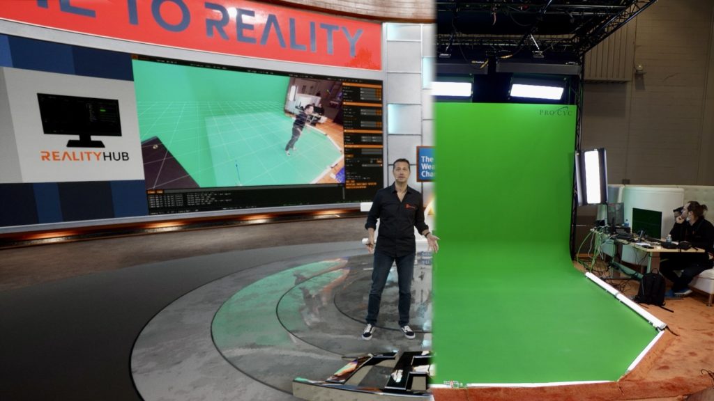 –RealityHub 1.2 controls the real-time graphics. The virtual studio uses Reality 4.27 and is ray-traced.